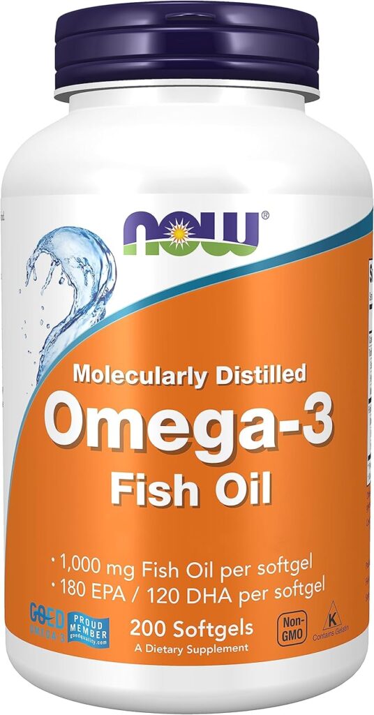 Now Foods offers 1000mg of fish oil per softgel, delivering 180mg EPA and 120mg DHA. This represents a basic-strength formulation, with the recommended serving being two softgels daily to reach 600mg combined omega-3s.