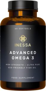 Inessa’s Omega 3 offers 1200mg of fish oil per capsule, delivering 480mg EPA and 360mg DHA. A moderate strength formulation that meets recommended daily intake levels in a single dose. The fish oil is presented in triglyceride form and undergoes a patented purification process designed to reduce contaminants below EU and GOED standards.